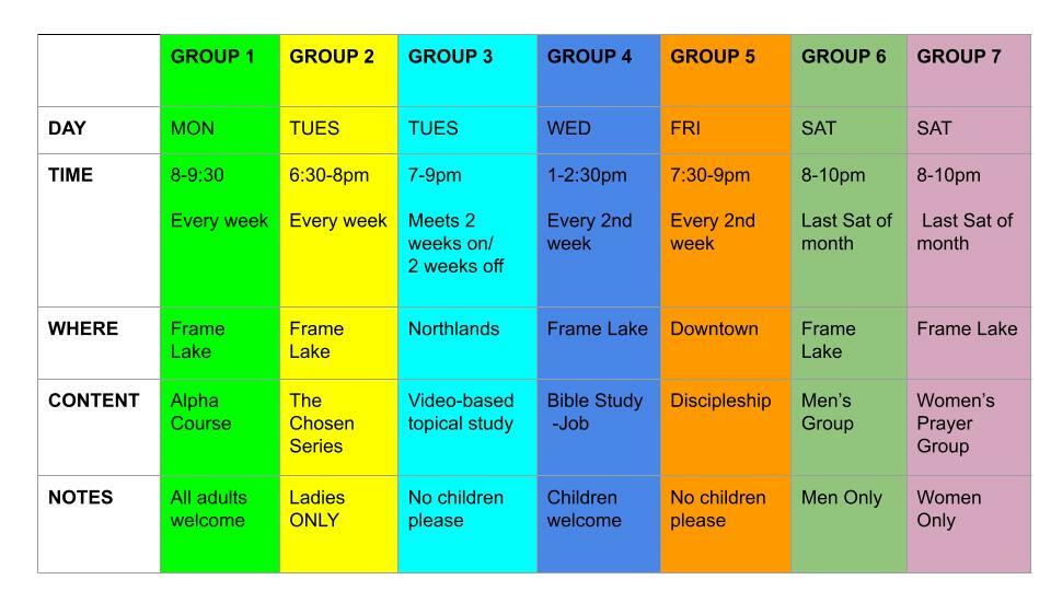 If you have questions or would like to join one of the groups, please contact Pastor Michaela: michaeladeputter@gmail.com
